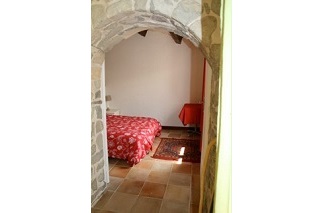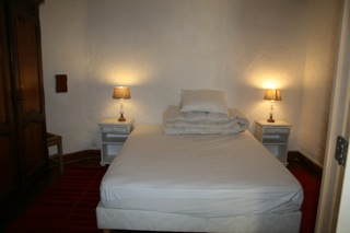 - Une chambre à coucher sans fenêtre avec lit double, armoire