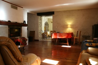 - Séjour, salle à manger, grande table à allonges, espace salon avec cheminée (feu ouvert), TV.