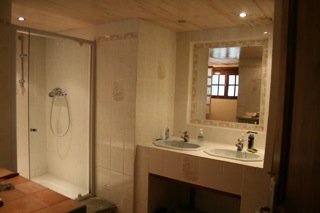 - Une salle d'eaux avec douche WC, double lavabo, lave linge