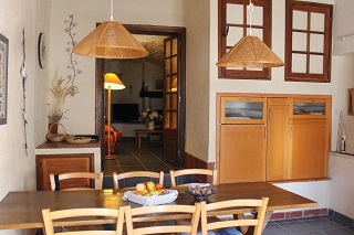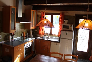 - Salle à manger avec coin cuisine équipée, micro-ondes, plaques vitro, frigo, lave-vaiselle